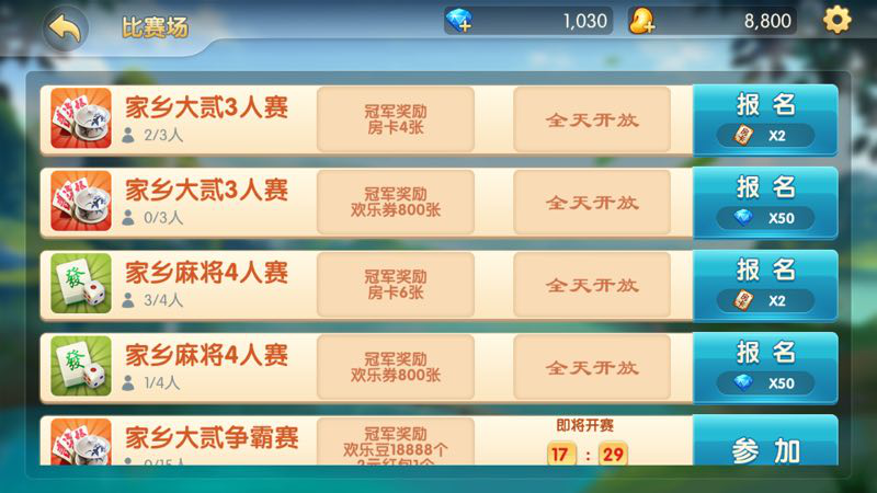 喜欢玩比赛场的朋友注意啦:除了常规的房卡报名的比赛场以外,新增了钻石报名的比赛场。在等待朋友上线的时候,不来一把么~